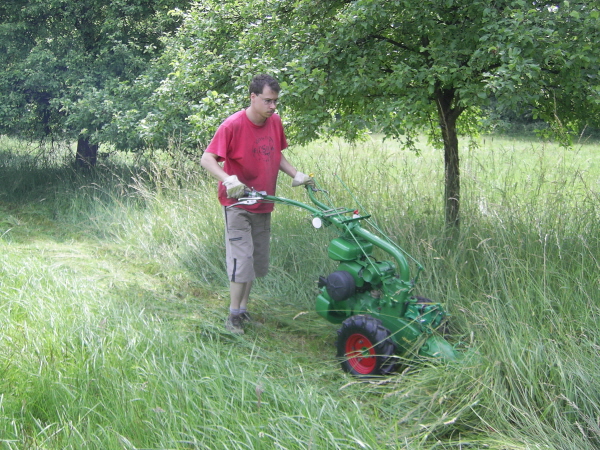 das kleine Mähwerk (0,75 m breit) ist das natürlich etwas